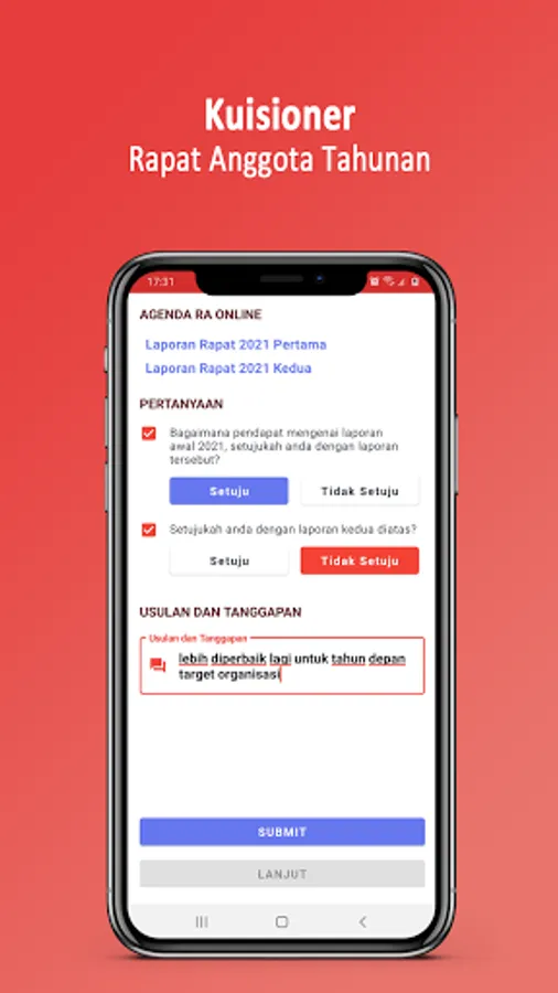Aplikasi dapat digunakan untuk melakukan Rapat Anggota Tahunan secara Online. Cocok untuk kondisi kantor atau organisasi yang sedang melakukan kebijakan Work From Home.