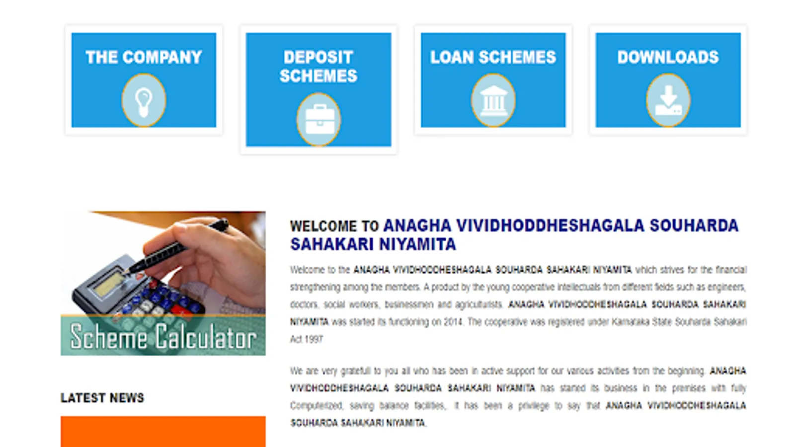 Welcome to the ANAGHA VIVIDHODDHESHAGALA SOUHARDA SAHAKARI NIYAMITA which strives for the financial strengthening among the members. A product by the young cooperative intellectuals from different fields such as engineers, doctors, social workers, businessmen and agriculturists. ANAGHA VIVIDHODDHESHAGALA SOUHARDA SAHAKARI NIYAMITA was started its functioning on 2014. The cooperative was registered under Karnataka State Souharda Sahakari Act 1997