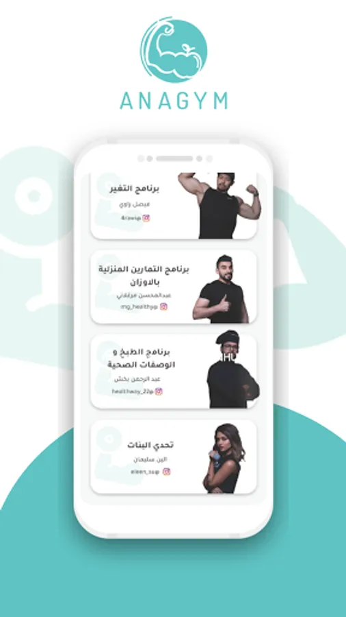 تطبيق انا جيم هوا التطبيق الرياضي الصحي الاول في الشرق الاوسط يحتوي على برامج تمارين ، برامج تغذية ، تحديات رياضية مقدمة من اخصائين تغذية ومدربين معتمدين دوليا بالاضافة الي برامج طبخ ووصفات صحية