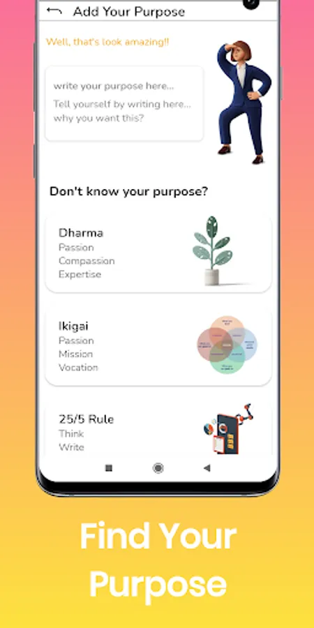 Why are you living? Not know ! it's ok around 95% people don't know it. But with us you'll not only find it but along with it you can enhance your life in a whole new direction. You'll not only set Goals but you'll never fail to complete them because of our step to walk method with support or our unique SWMED. You can build habit easily with positive enforcement. Anisha is made after analyzing the core concept of 9 books and observing tons of data about why people don't successful in their life.