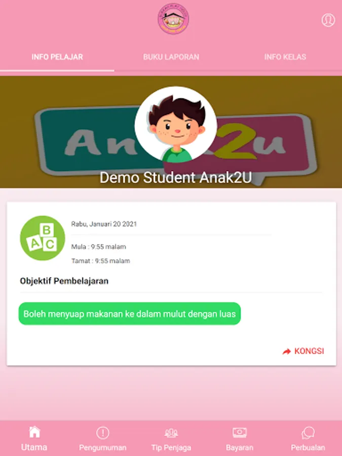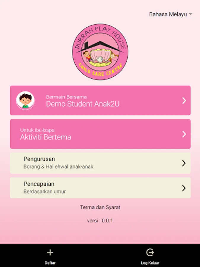 Durrah is a collaboration with Anak2U to provide a same application with a different theme according to Durrah.