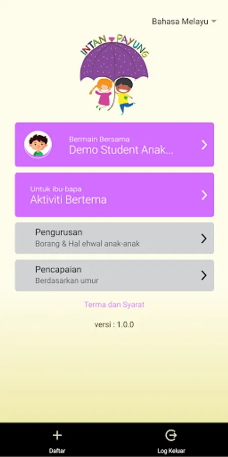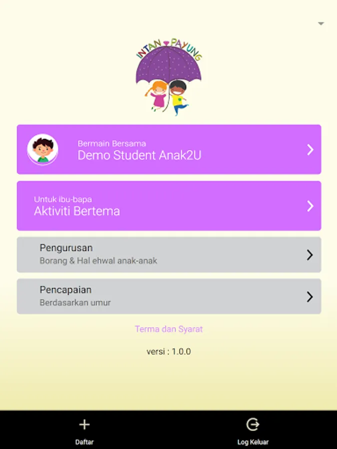 Intan Payung is a collaboration with Anak2U to provide a same application with a different theme according to Intan Payung.