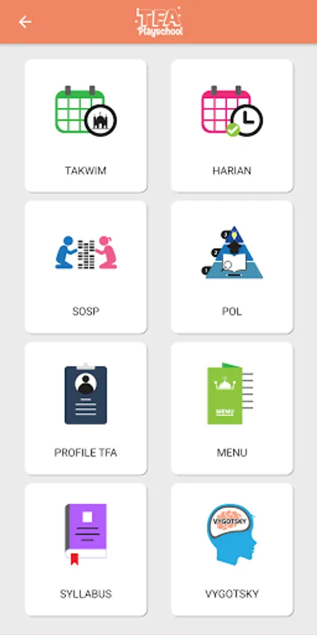 TFA Parent is a collaboration with Anak2U to provide a same application with a different theme according to TFA Playschool.