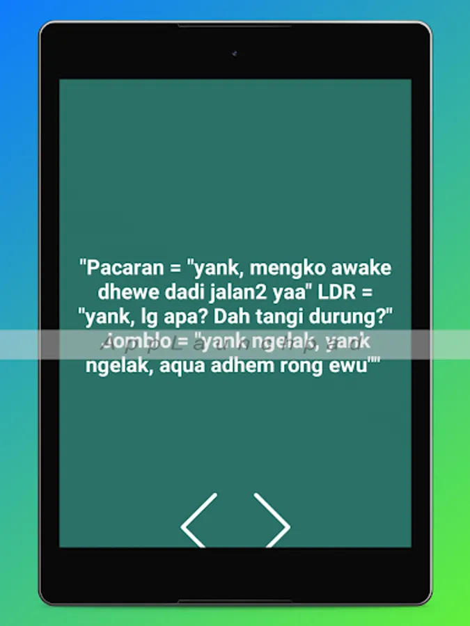 Application that contains wisdom and motivation, humor as well as kromo and ngoko Javanese pantun and Indonesian language everyday to preserve the local language culture in Indonesia.