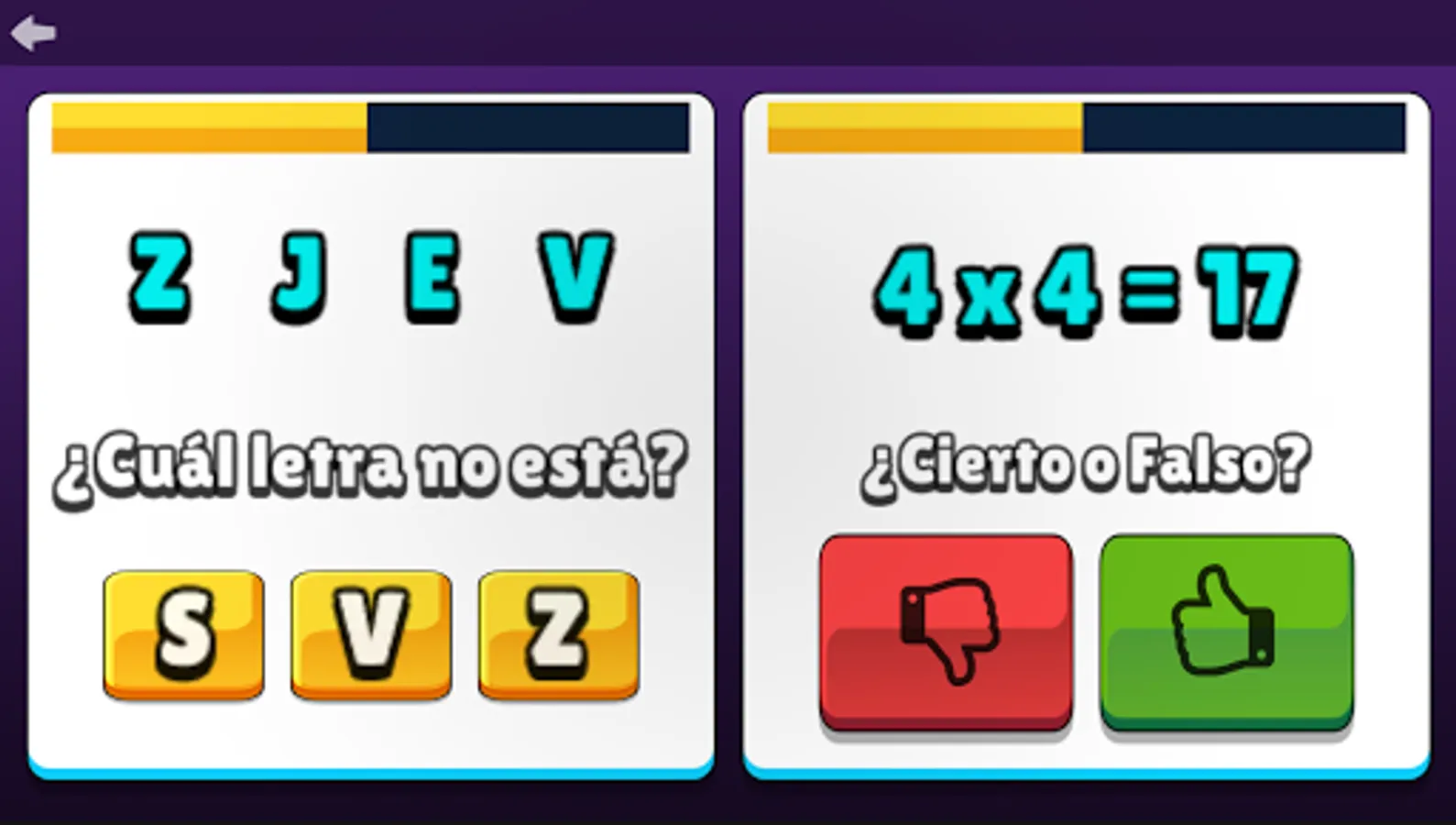 * In the "Minigames" section: there are tests of mental agility, concentration, attention, logic, PlayQuiz or different skills, which you can play several times to get a better score and compete in the world ranking or with your close friends.