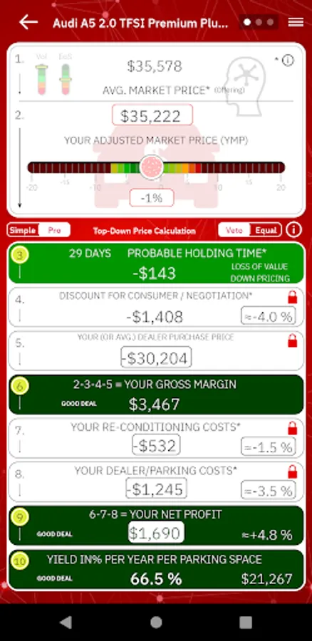 Optimal decisions result by optimal balancing the multi-purchase-interests (Purchase-interests: Step 3: "Speedy Gonzales", Step 7: "Profit/car", Step 8: "Alternative typ. Dealer Purchase" and Step 10: "Auction Mission Accomplished").