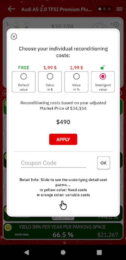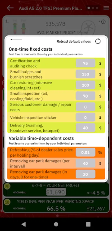 Calculation of the daily market price, possible for each detail car model (incl. trim-line), verifying the influence of up to 160 important variables at the same time, such as extras/options, color, region, etc. etc.