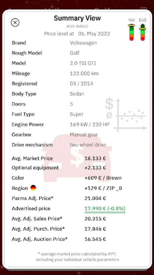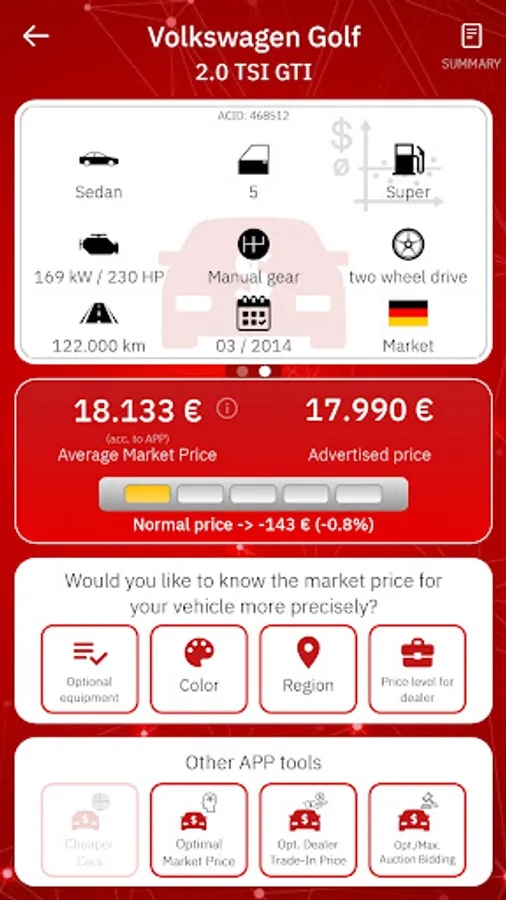 Afterwards, our APP system tries to read and interpret all this information of your single car and compares that to all similar cars our APP system found online.