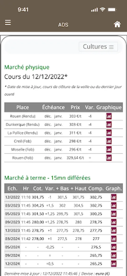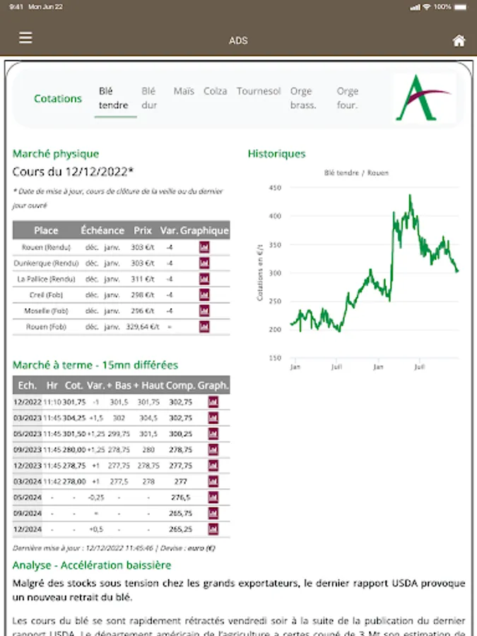 You can also consult professional weather forecasts, quotations with market analysis, price alerts and the online sale of cereals.