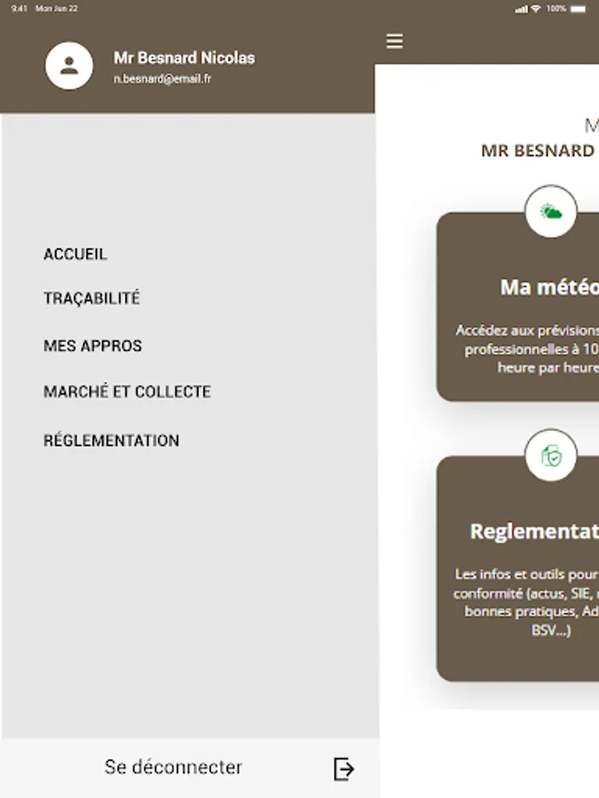 Download the app and log in to your customer area to manage your farm's account. You will find information about your contributions, your orders, your deliveries as well as your outstanding amounts, invoices and account statements.