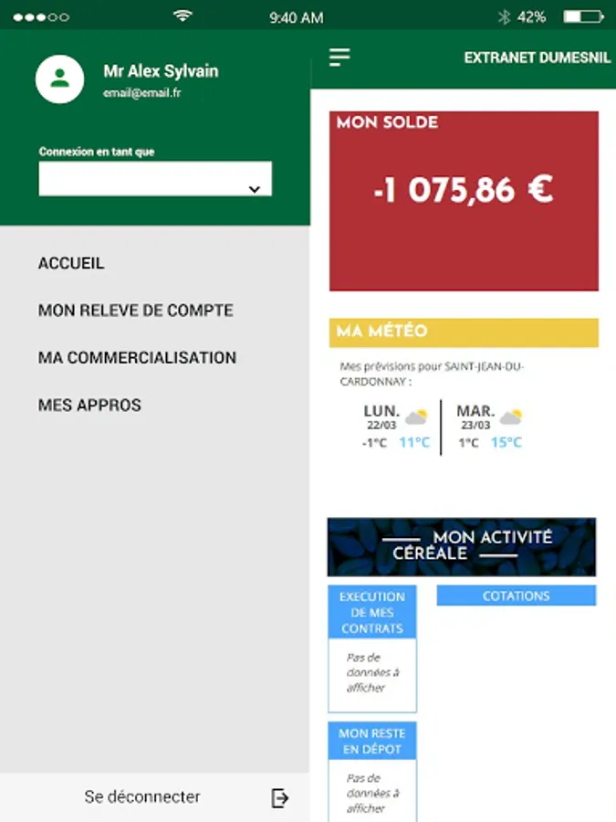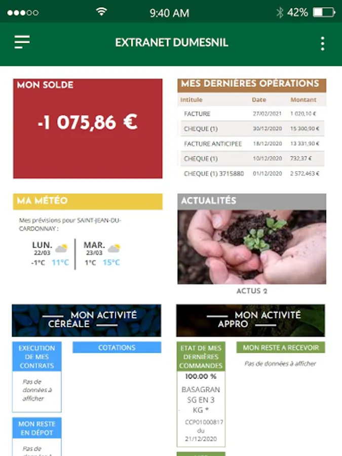 The Dumesnil mobile application will allow you to connect to your customer area to find your contracts, your orders, your invoices, your deliveries ...