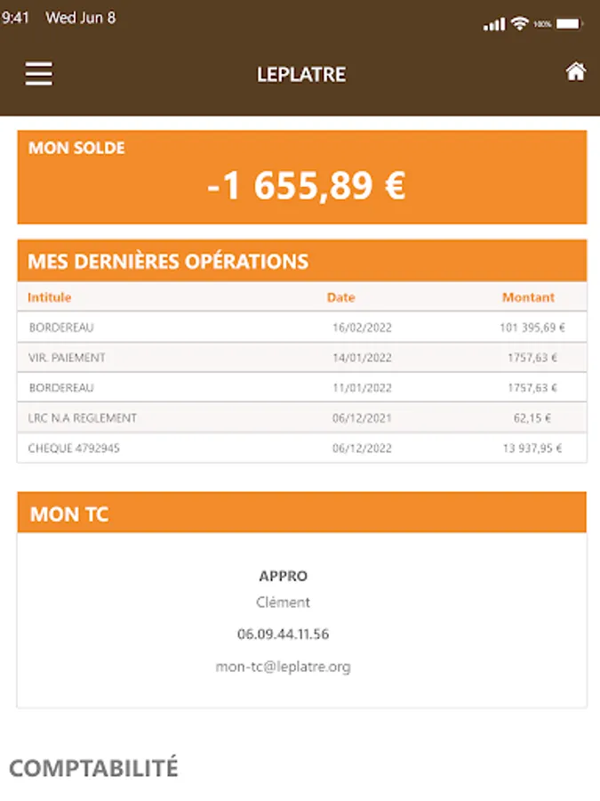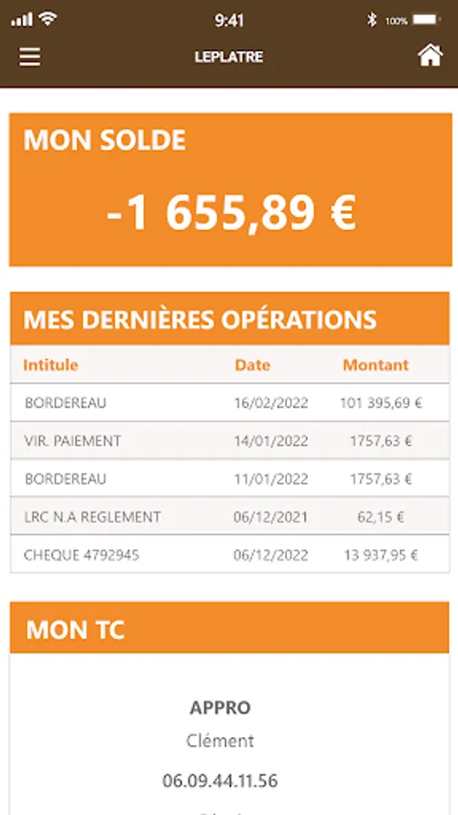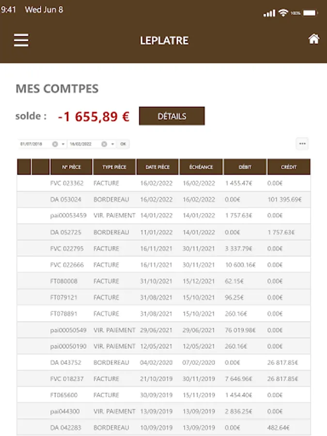 - Contribution, order, contract, delivery, work in progress, invoice and statement of account