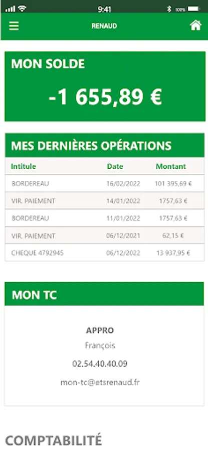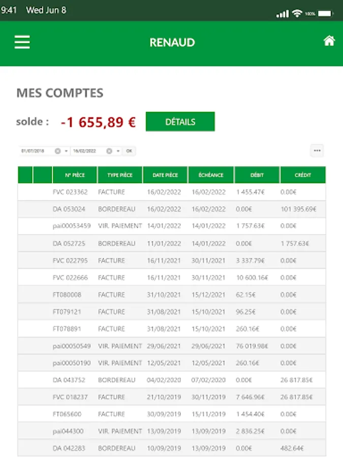 - Contribution, order, contract, delivery, work in progress, invoice and statement of account