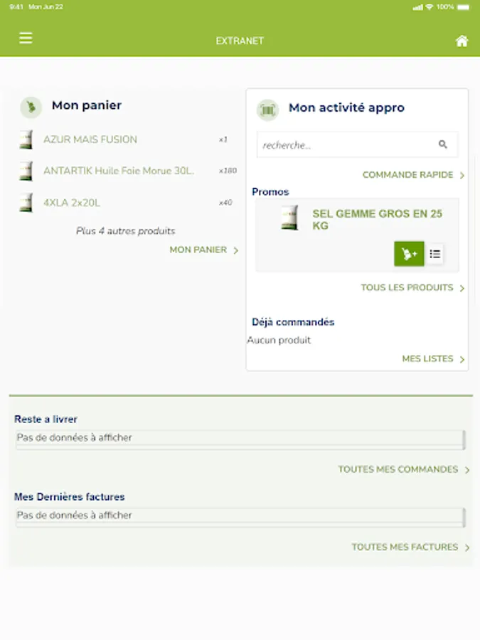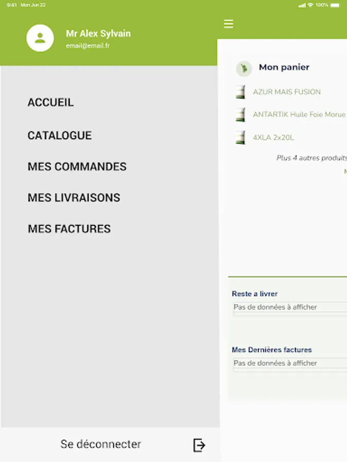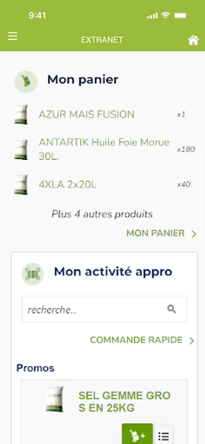 Thanks to the SOLEIL NUTRITION mobile application, you can connect to your space to find all your account information and stay in touch with your business. Here you will find the latest news. You can also view the status of your accounts and the history of your orders. You will also be able to see your deliveries. You can also consult our product catalog.