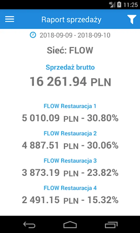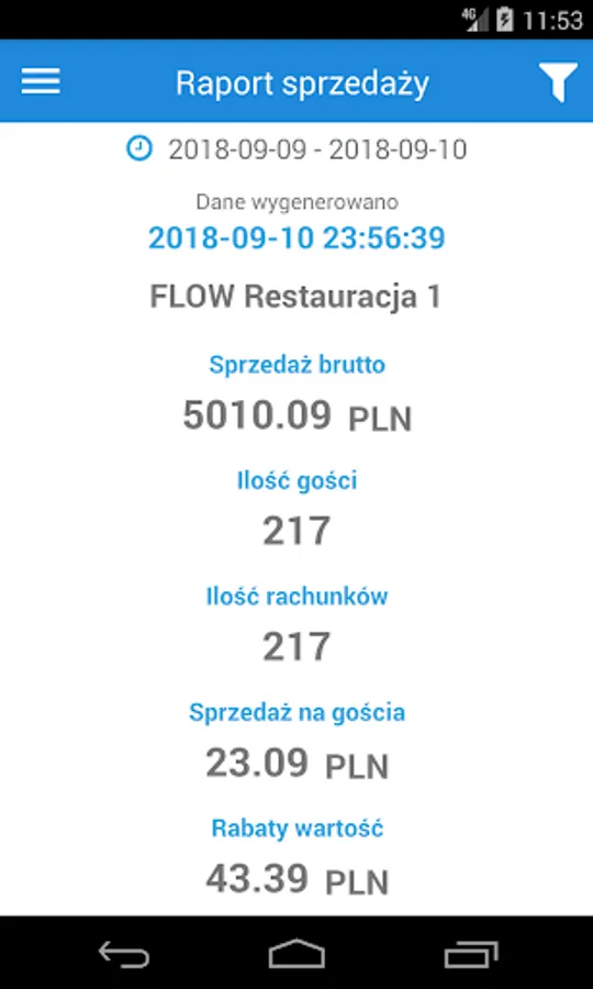 The application allows constant supervision over the sale, the number of guests, the average value of bills