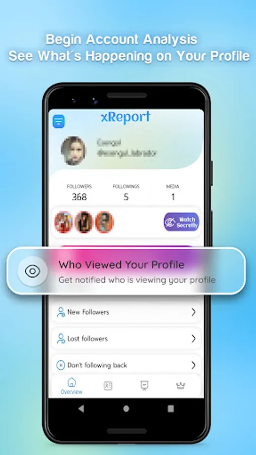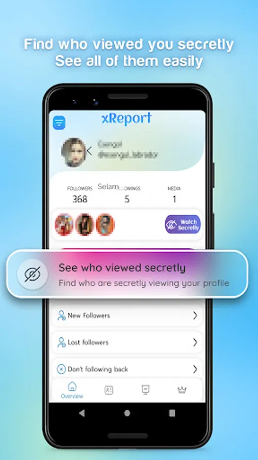With xReport, you can safely analyze your account in detail. You can see who viewed your profile 👀 and catch those who unfollowed you. You can instantly notice who liked and commented on you last.