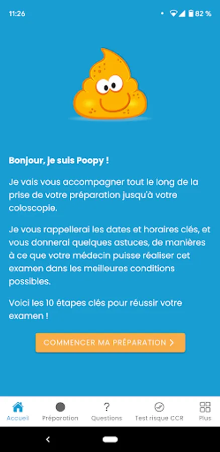 The "MaColo" app and its mascot Poopy will guide you through the preparation process until the day of your exam.
