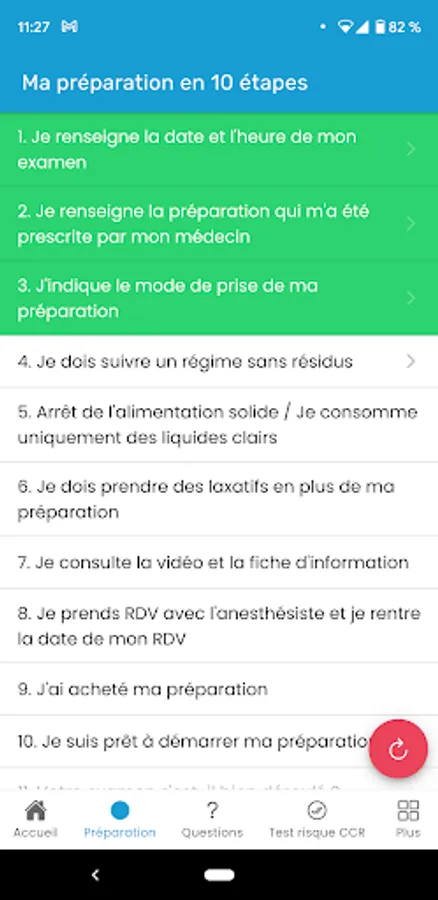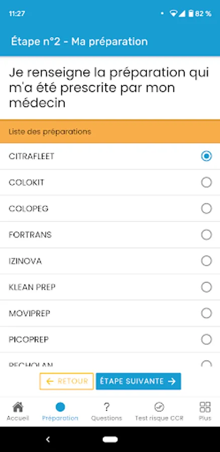 To do this, it's very simple, let yourself be guided by completing the 10 screens that Poopy presents to you. All you have to do is fill in the different steps, which include the information provided by your gastroenterologist: residue-free diet, type and intake of preparation, additional laxatives ...