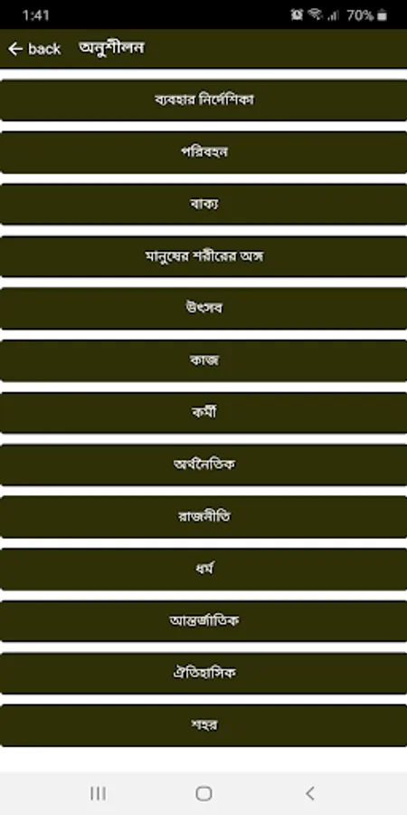পরিবহন, বাক্য, মানুষের শরীরের অঙ্গ, উৎস, কাজ, রং, কর্মী, অর্থনৈতিক, রাজনৈতিক, ধর্ম, আন্তর্জাতিক, ঐতিহাসিক বিষয়াদি, শহর- এ সব কিছুর বিস্তারিত ছবি, ভিডিও এবং লিখার মাধ্যমে শিখানোর পদ্ধতি। আপলোড করা হবে।