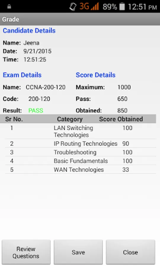 Complete explanation is provided for each question in Learn mode, and actual exam environment is simulated in Exam mode. Options to save the results and reviewing questions are provided.