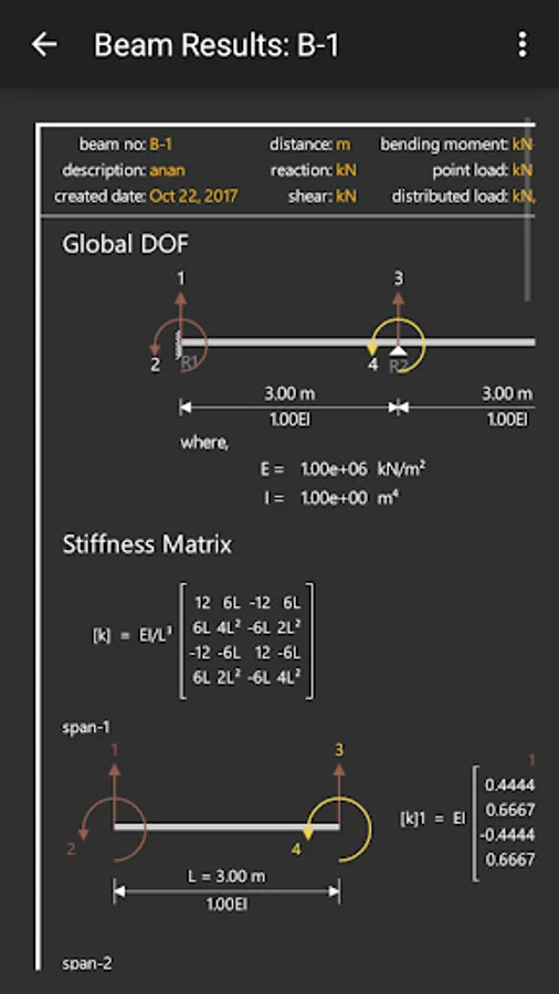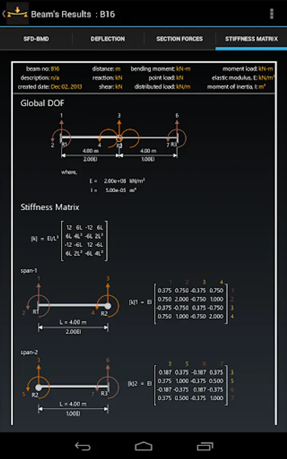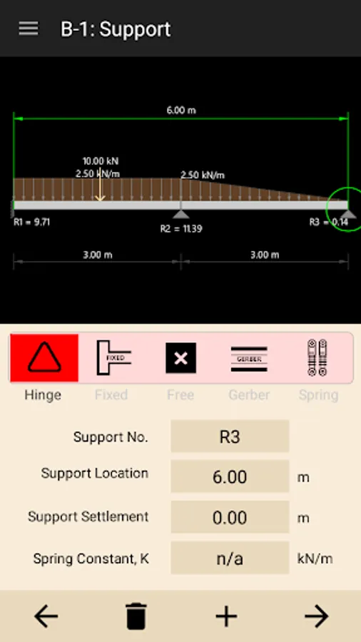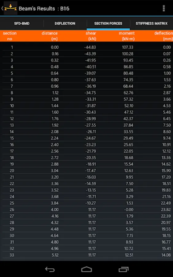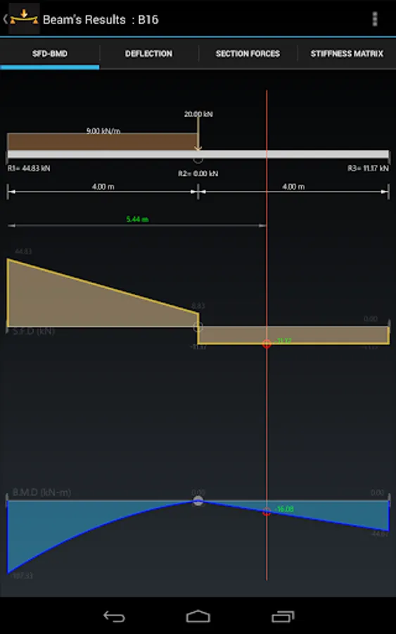 •Reading the result (shear, bending moment and deflection) all along the beam length by tap & move the tracing line along the beam.