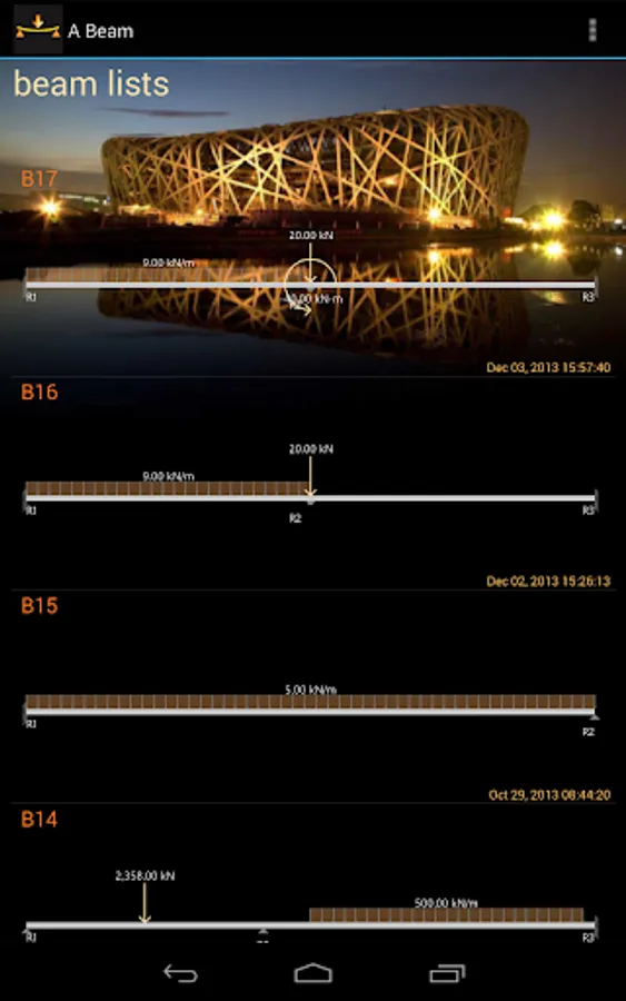 •Saved and listed all the previous beams by showing each beam's Free Body Diagram (F.B.D) on the main screen so user can select and access previous work easily.