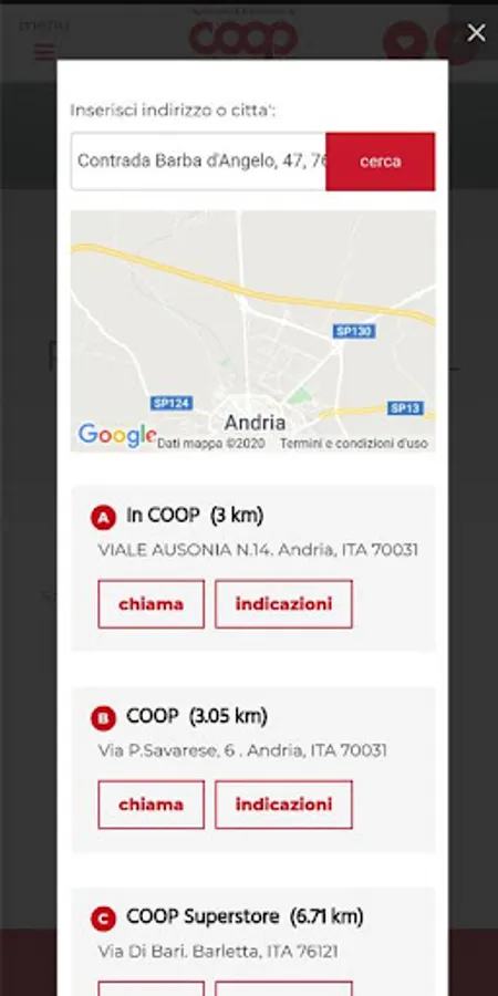 Search for the nearest Coop di Puglia and Basilicata supermarket, using geolocation or browsing the complete list of our stores.
