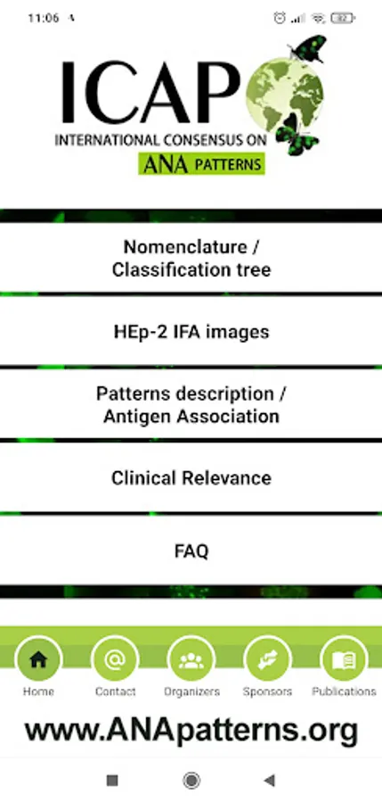 Welcome to the official app for the International Consensus on Antinuclear Antibody (ANA) Patterns (ICAP). ICAP was initiated as a workshop aiming to thoroughly discuss and to promote consensus regarding the richness and nuances of morphological patterns observed in the indirect immunofluorescence assay on HEp-2 cells (HEp-2 IFA). The ICAP initiative was implemented at the 12th International Workshop on Autoantibodies and Autoimmunity (IWAA, São Paulo, Brazil) by members of the Autoantibody Standardization Committee (ASC), a subcommittee of the International Union of Immunological Societies (IUIS) Quality Assessment and Standardization Committee and affiliated with the Centers for Diseases Control and Prevention (CDC). The ICAP committee is operating as an ASC sub-committee.