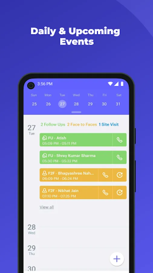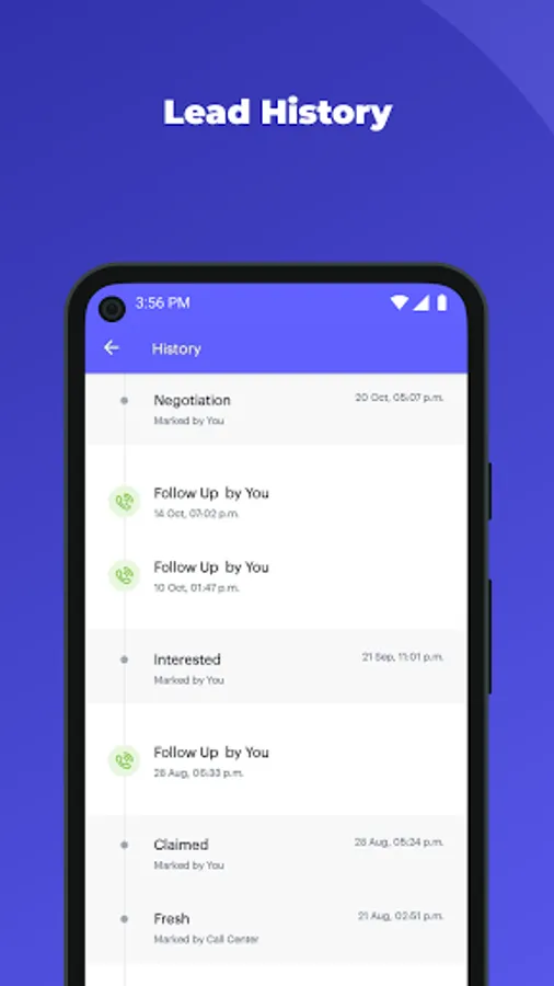 The Sales App empowers Sales Agents by enabling them to manage their leads and day-to-day activities. It is designed for the employees of today using a mobile-only and easy-to-use experience. It enables sales agents to followup with clients, manage calls across phone and web, incoming caller id detection based on the assigned customers and automate next tasks based on status of calls (time duration, connected, rejected, successful) with the customers.