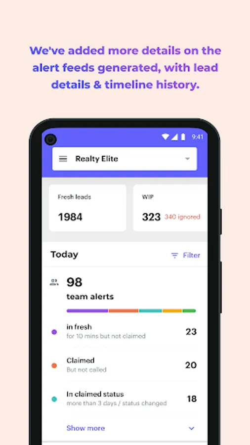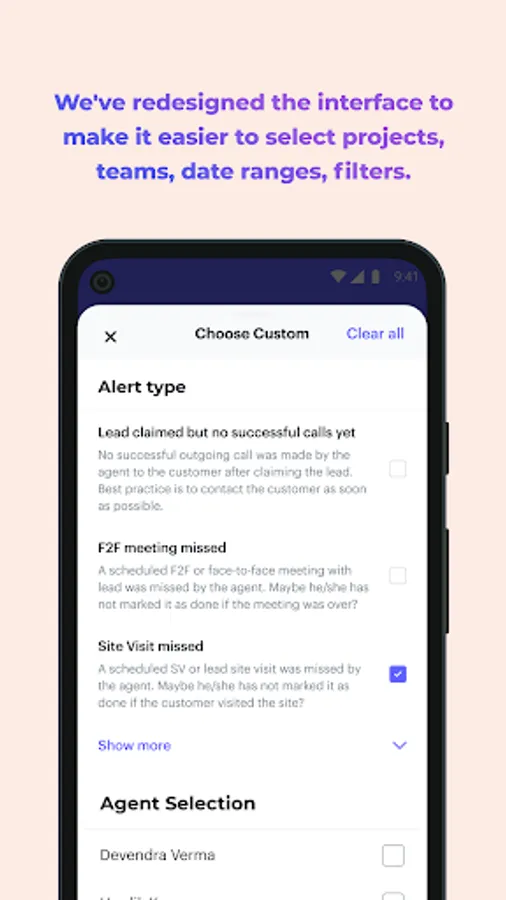 Sales Team Leads App enable team leads to stay notified about the daily activities of their teams in real time and on the go. Team Leads can filter notifications based on projects, team members and message types.