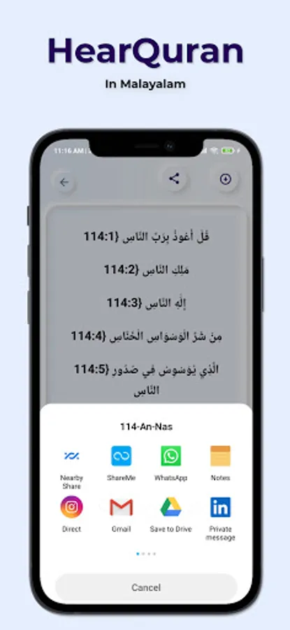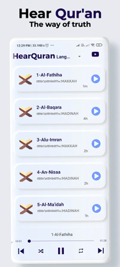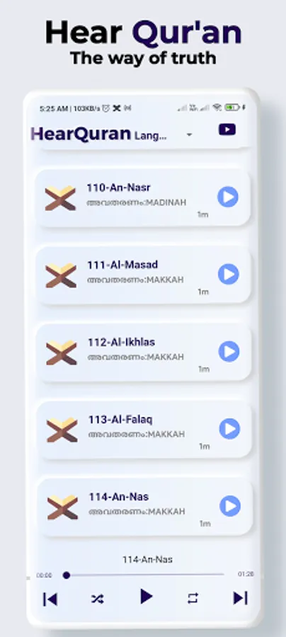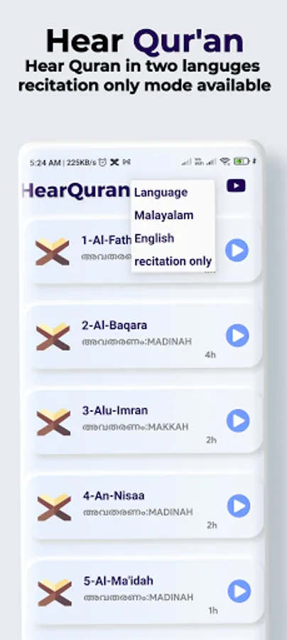 ⚙ listen Quran with Malayalam translation