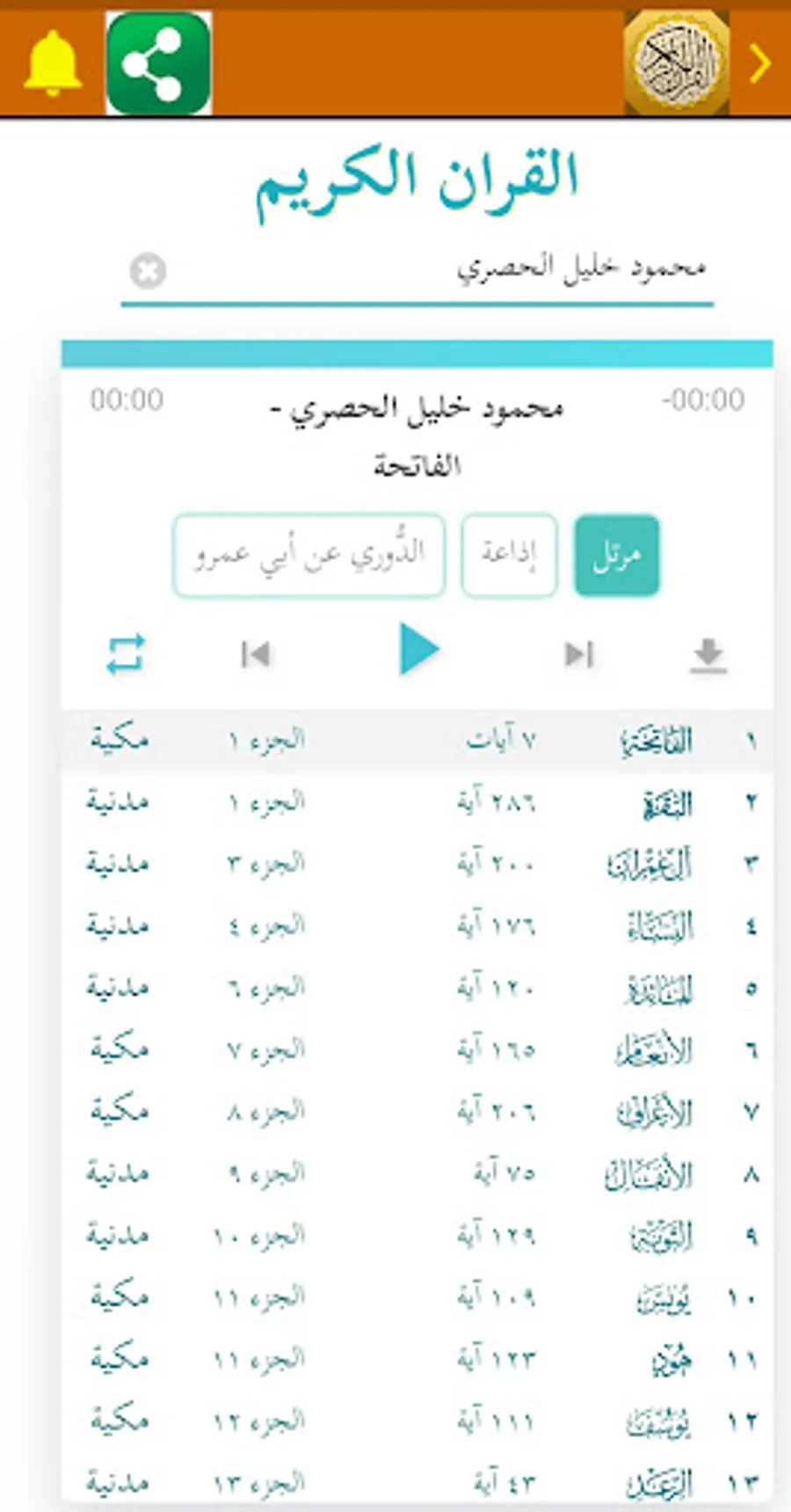 It is possible to listen to all the Qur’an clearly in the voice of any sheikh.
