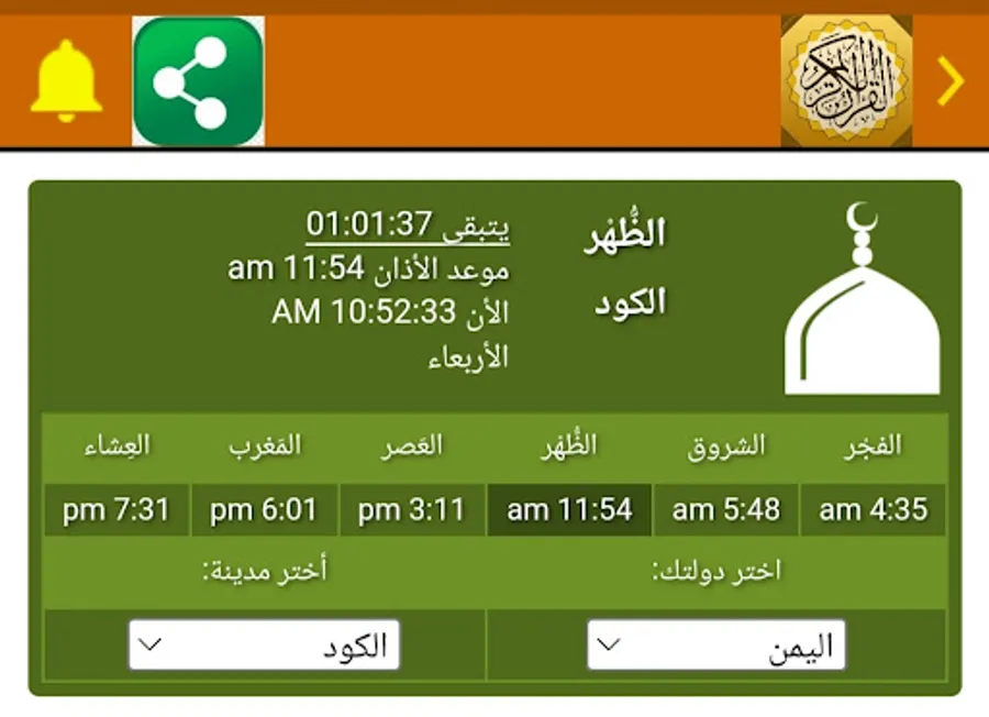 2- The user has the ability to determine the directions to know the direction of the Qibla