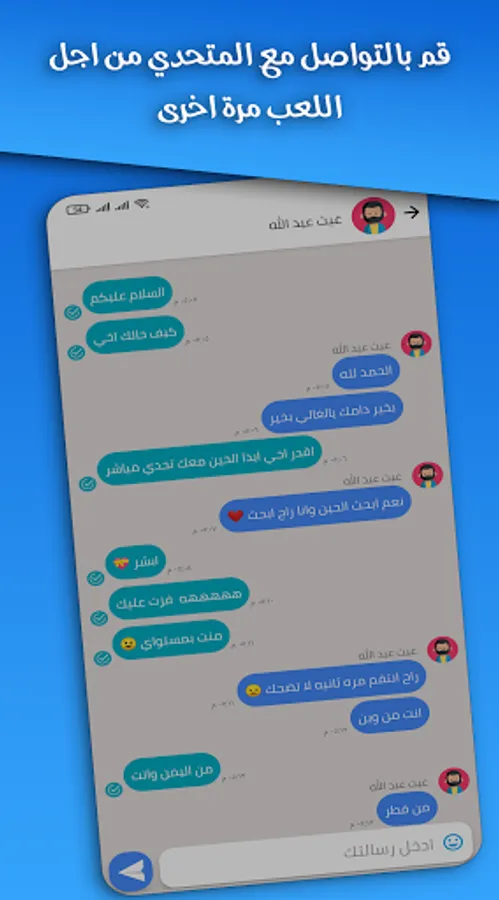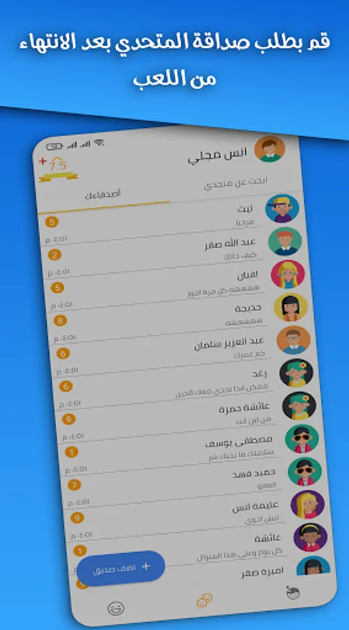 Make new friends around the world with competitors by requesting their friendship after completing the challenge so that you can communicate with them again and ask for new challenges and this is what distinguishes our application from others
