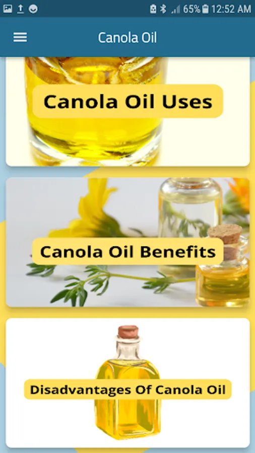 We brought you an application you are looking for, and it is about canola oil, which is considered one of the useful oils, and we have talked about this oil in the Canola Oil application, which contains information about its uses and its damages as well so that you are fully informed of its benefits and harms in some cases and we have been keen In the Canola Oil application, we provide complete information to the user.