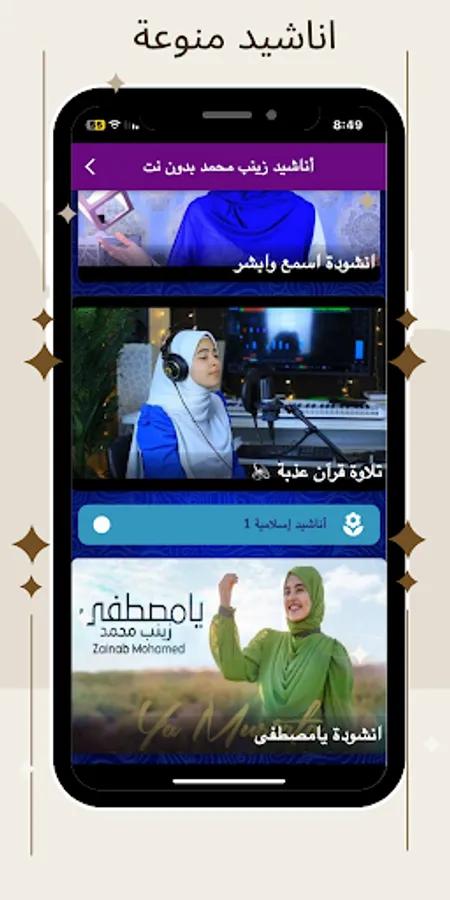 “Zainab Muhammad’s songs - inspiring spirituality” is the application that will take you on a unique journey into the world of spiritual music and peaceful Quranic recitations. Get ready for an exceptional experience that combines the most wonderful Islamic songs by the distinguished artist Zeina Mohamed, with calm recitations with a gentle voice and wonderful intonation.