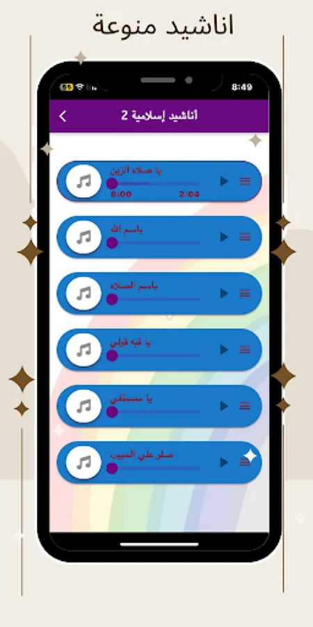 The app's interface provides an intuitive and intuitive user experience, making it easy to navigate through content and save your favorites. You can also update the application regularly to benefit from more wonderful songs and valuable recitations that touch hearts and enhance spirituality.