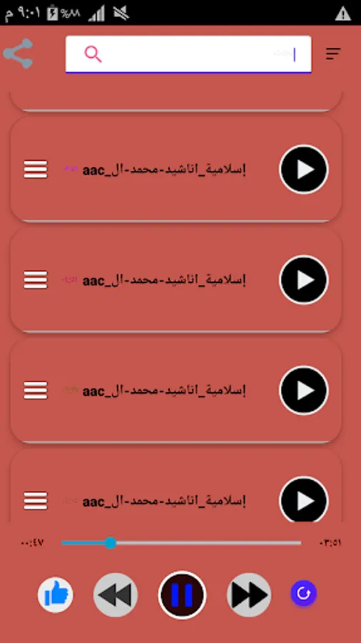 Now there is an application of songs of Muhammad al-Muqit in one application without the need for an Internet network