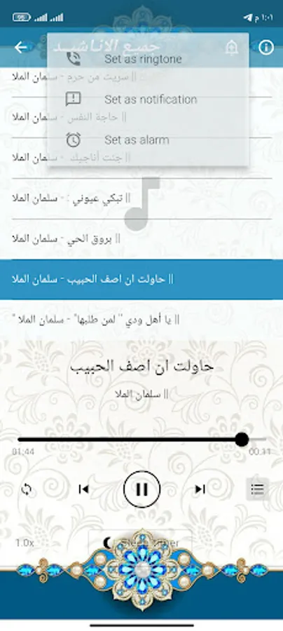 All the songs of Salman Al Mulla are complete without the net. The application contains all the songs complete in high quality. You can also set a ringtone from within the application, and you can save the song inside your phone. Download the application now for free