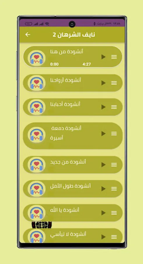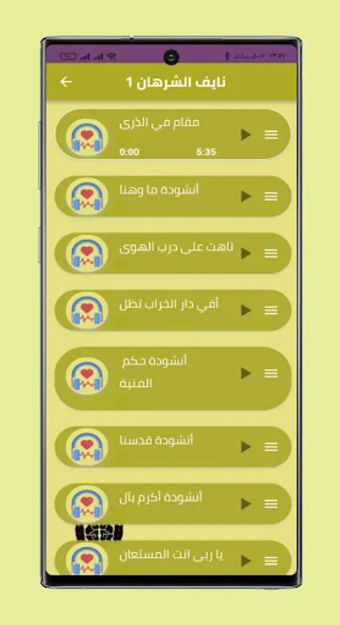 The application includes random lists in which there are Quran, supplications and songs of Nayef Al-Sharhan