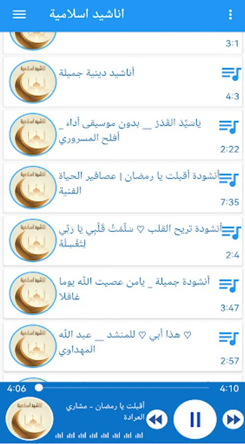 تطبيق اناشيد اسلامية يحتوي على العديد من الأناشيد الدينية المميزة والنغمات الدينية الرائعة و المشهورة بجودة عالية