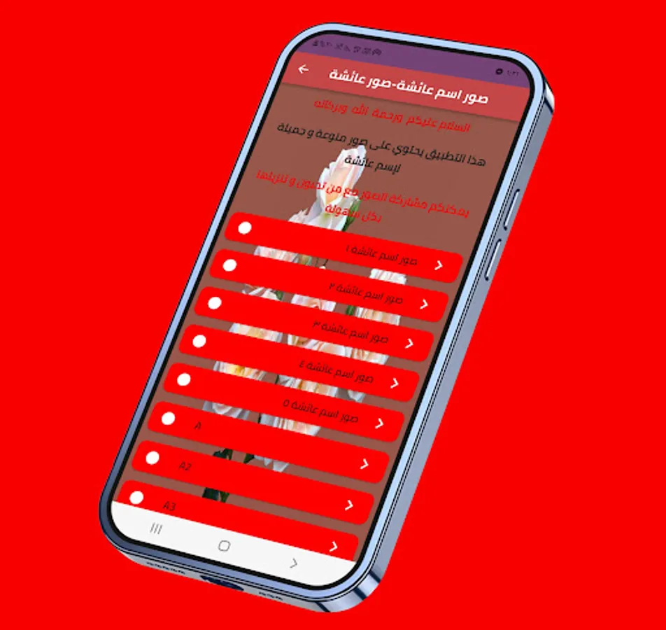 It is an application that contains dozens of images and backgrounds for the name Aisha and the letter A, the first letter in the name Aisha