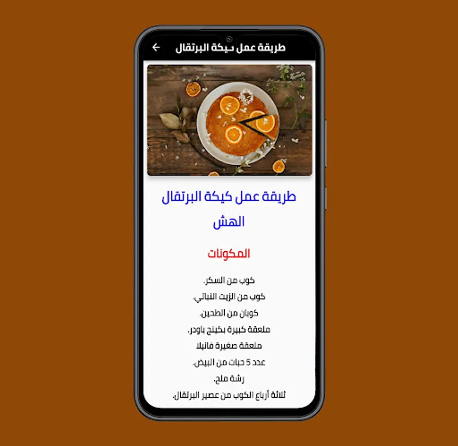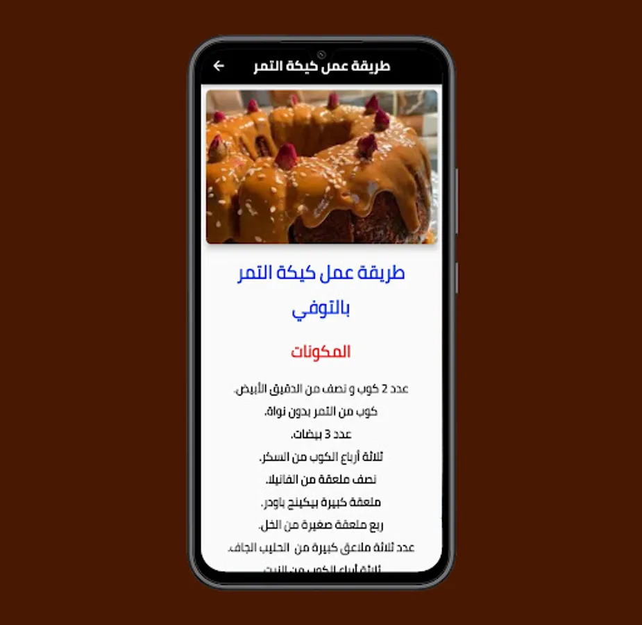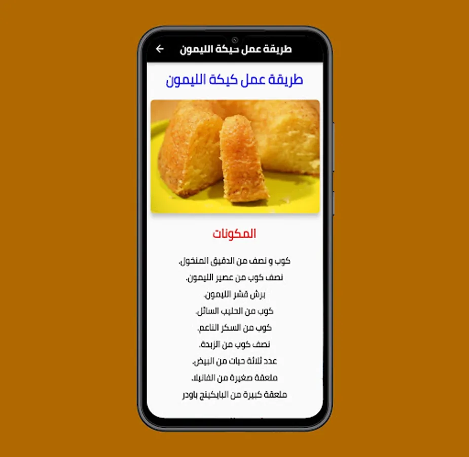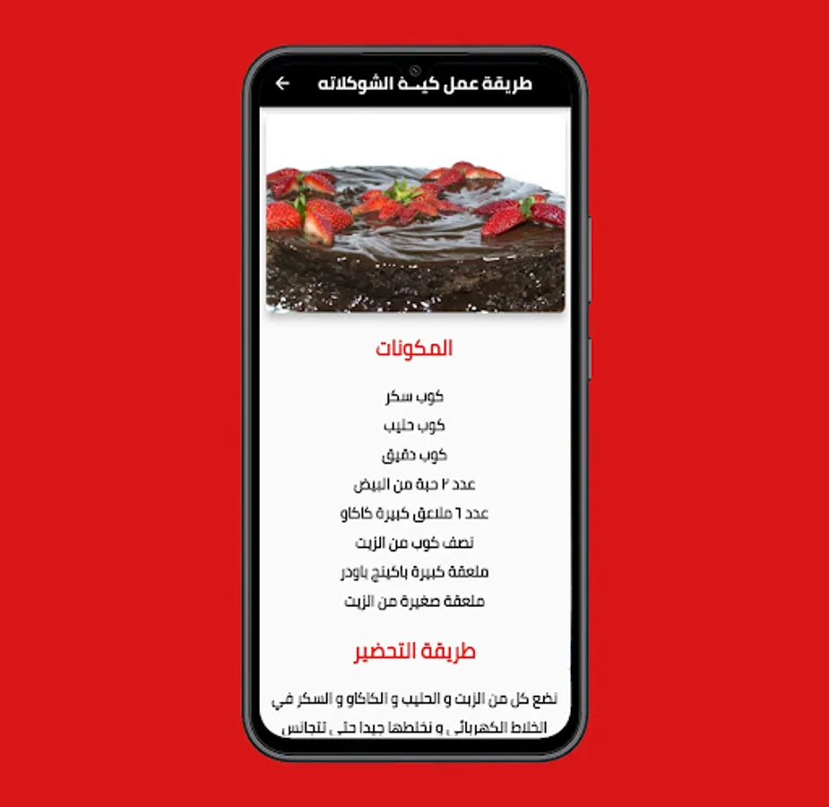 The application explains how to make sponge cake and carrot cake, in addition to lemon cake, orange cake, apple cake, pineapple cake, sand cake, millet cake, milk cake, and Vimto cake. It also contains recipes for saffron cake, cupcakes, lazy cake, and Nescafe cake. And chocolate cake, milk cake, jelly cake, and sand cake