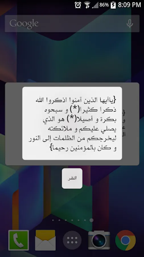 برنامج ذكر برنامج اسلامي يعرض لك تنبيها يحتوي على اذكار وادعية مأثورة