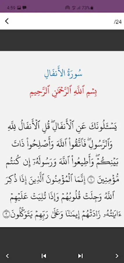 4- A simple user interface that enables you to listen and read Surat Al-Anfal written in a clear font with ease