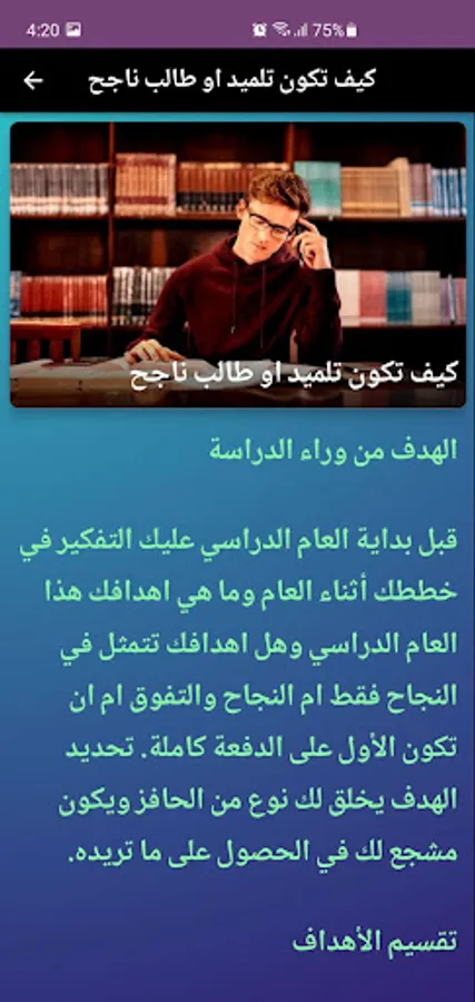 Do you want to know how to be successful in studying? In this application, you will find golden rules for the secret of success in the study. We put in your hands in the hands of students and students tips for studying and how to succeed in studying and a set of methods and tips on how to achieve academic excellence and effective and successful study for all students and students at all educational levels and also a special part about Methods for success in the baccalaureate.