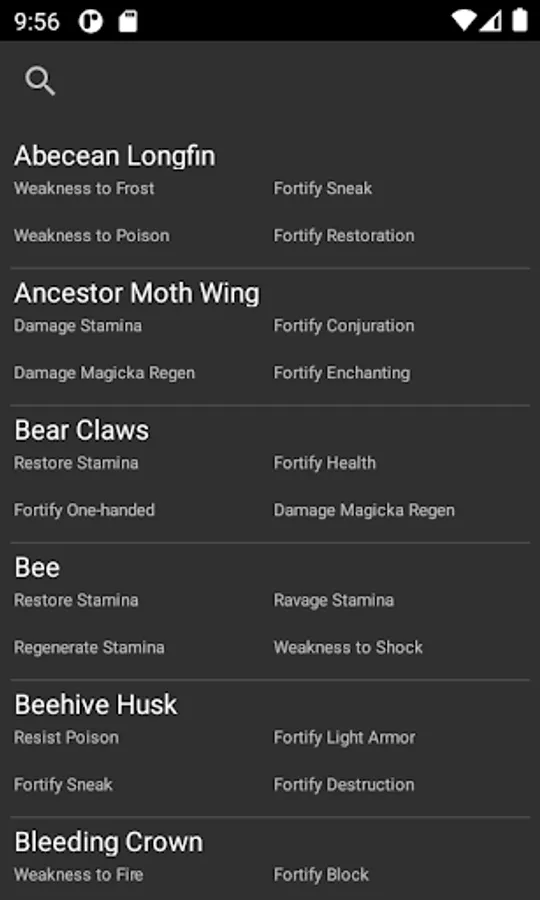 This app contains data of all alchemy ingredients and effects for video game The Elder Scrolls V Skyrim. Also it can help you to find the best ingredients to mix based on your inventory.