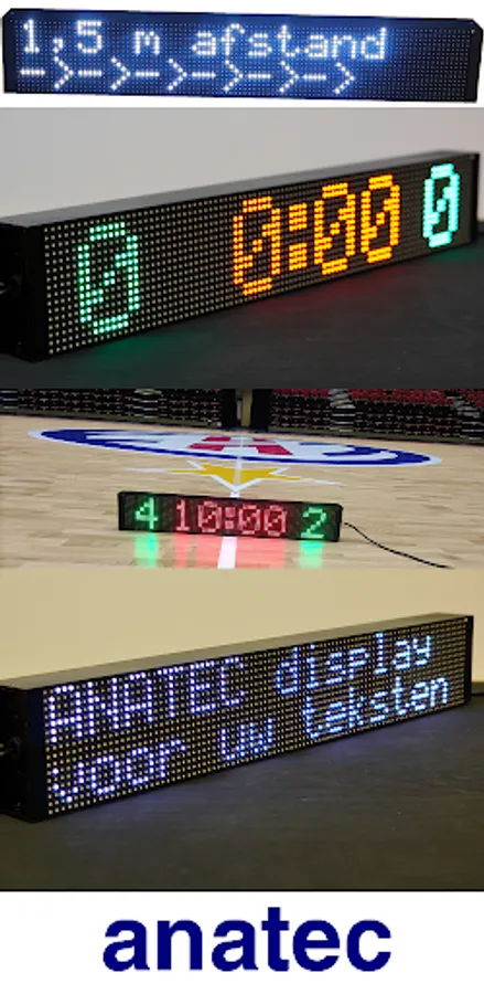 This is an app to control the Anatec display 96x16P8OC and similar Anatec displays. The display can be used as a scoreboard, information display and/or clock. This app can not be used without a display.