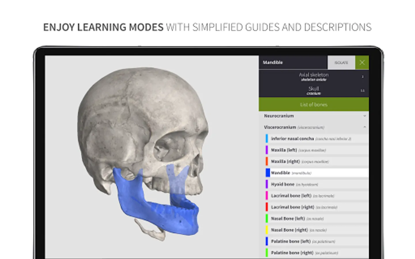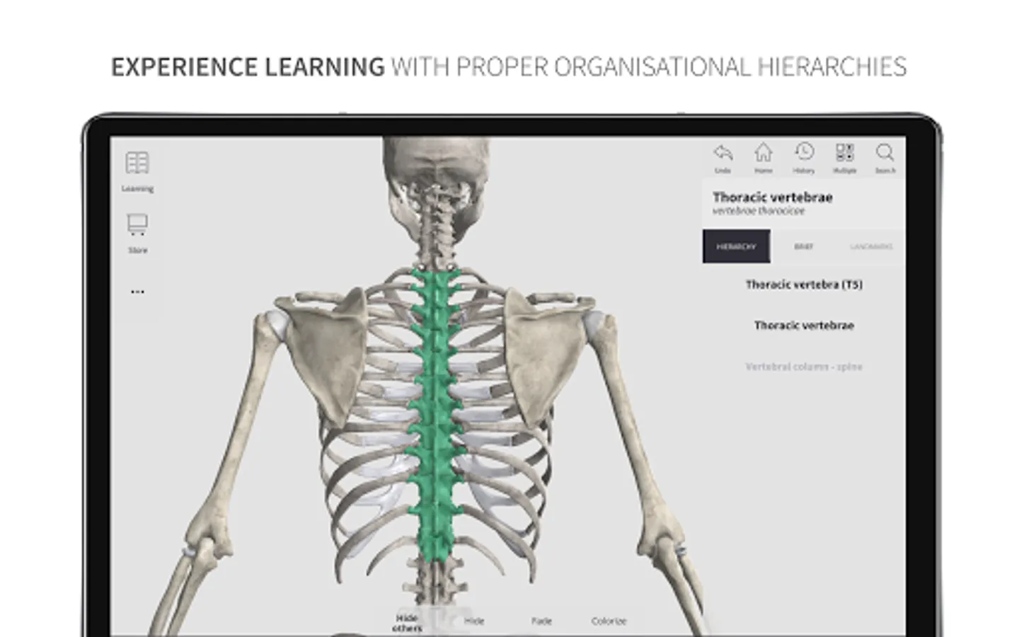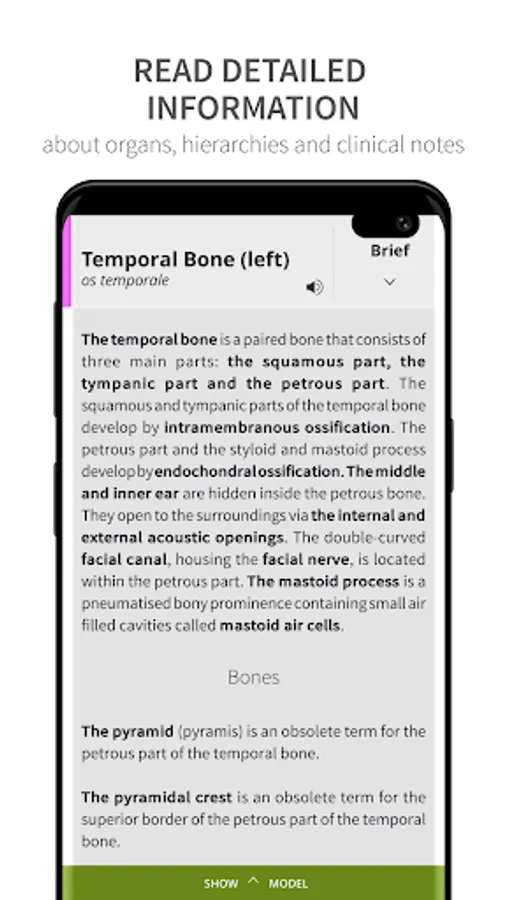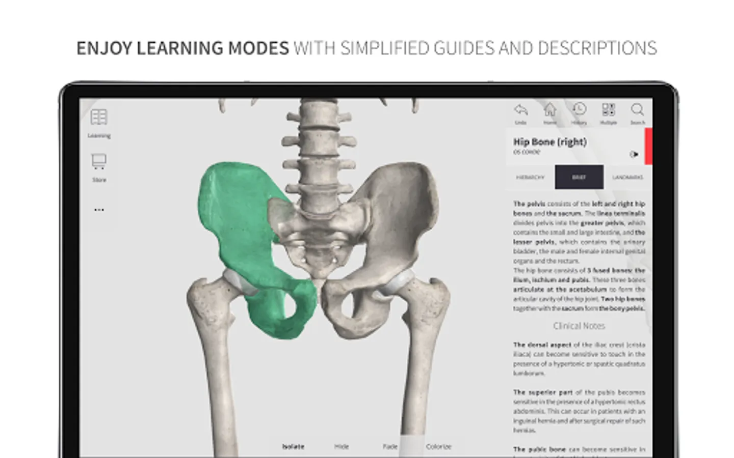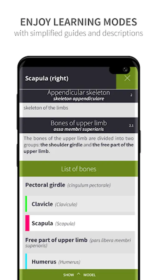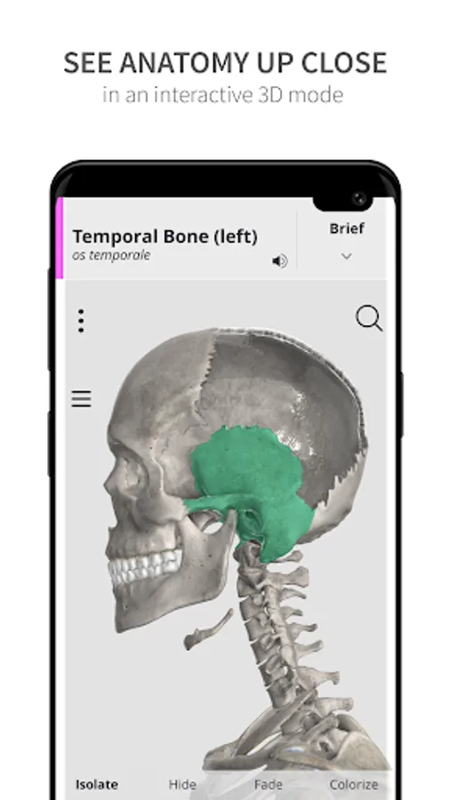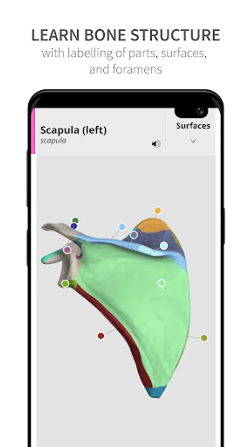 *** Learning mode: A vivid, color coded 3D map allows users to view high-resolution textures accompanied by informative descriptions from comprehensive textbook ‘Memorix Anatomy’. These are arranged into a proper anatomical hierarchy, meaning learning is structured and easy to understand.