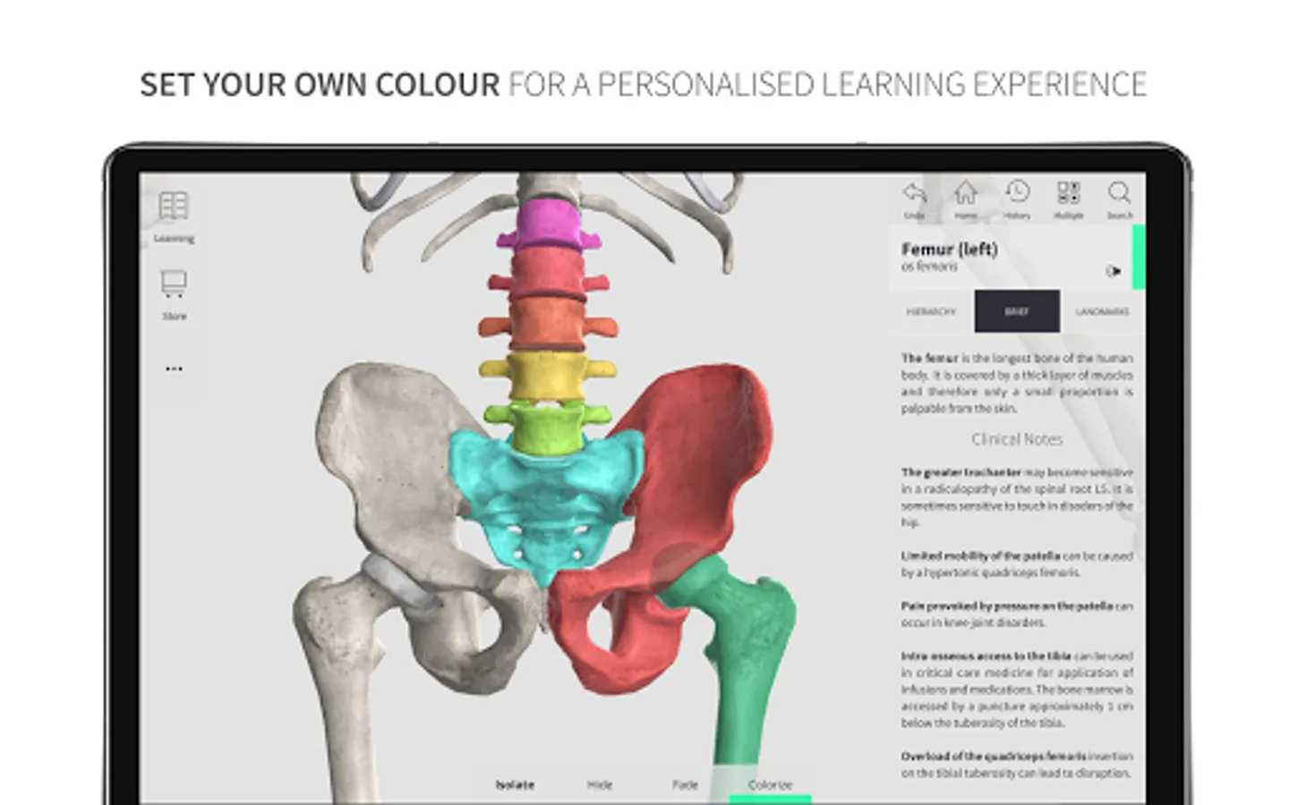 *** Colorize: Set your own color for organs, structures or systems for more effective memorizing